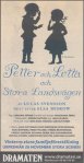 Petter och Lotta sattes år 2005 upp som teater på Dramaten i Stockholm. Fantasieggande och upplyftande var några av omdömena från en entusiastisk publik. En familjeföreställning med stämsång, teater och rim, i 84 föreställningar. Fortsätt läsa |
